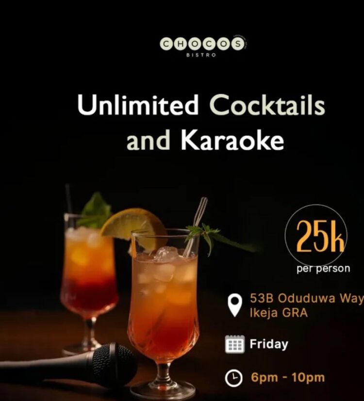 Enjoy Unlimited Cocktail and Karaoke every Friday from 6pm for 25k per person
