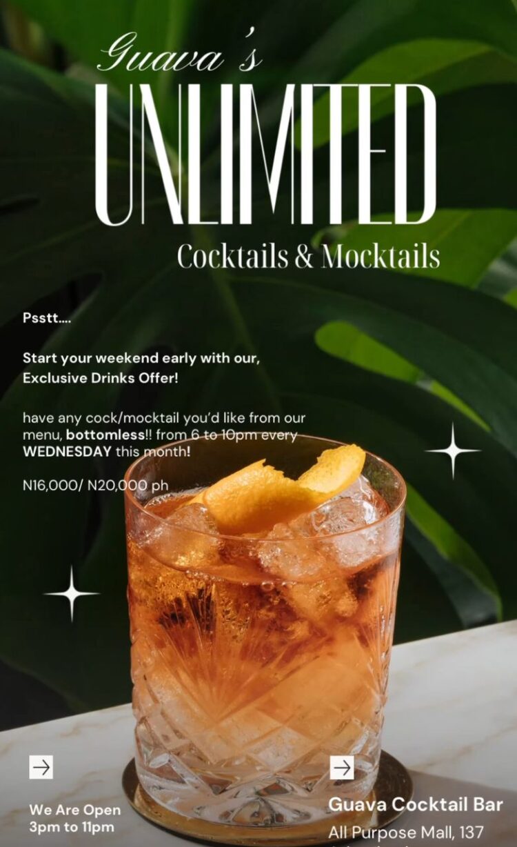 Enjoy Unlimited Cocktails every Wednesday from 3pm – 11pm