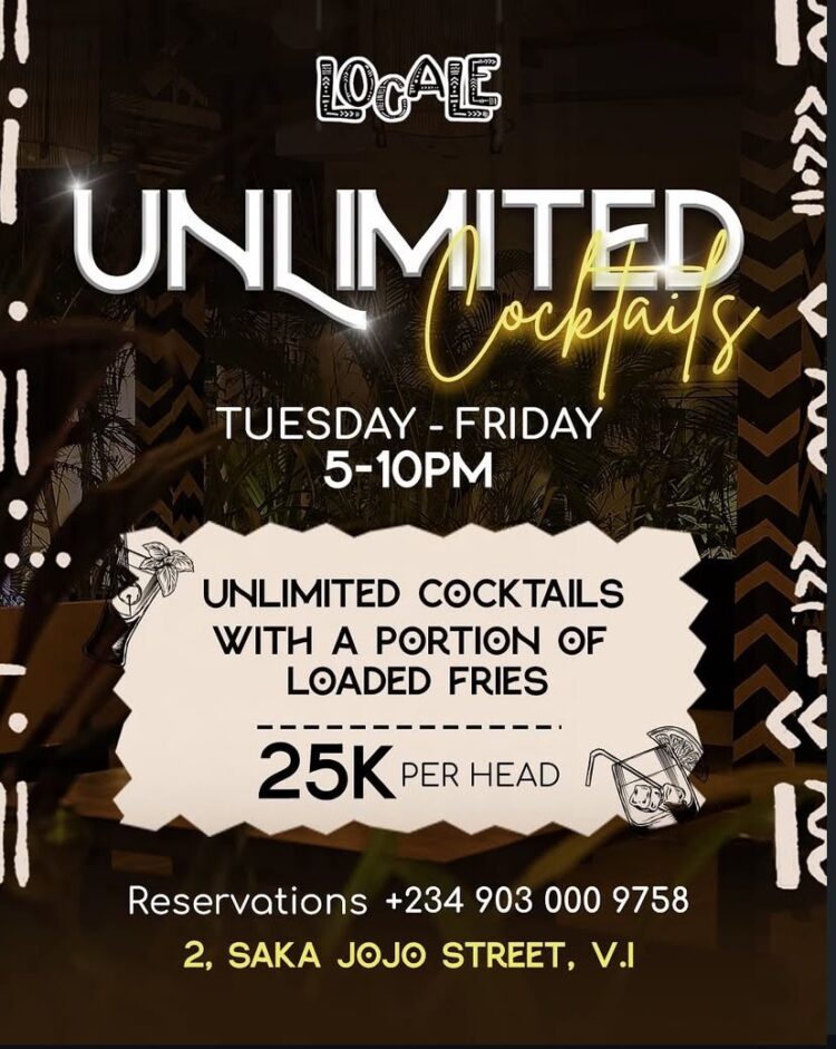 Enjoy Unlimited Cocktails every Tuesday – Friday from 5pm – 10pm